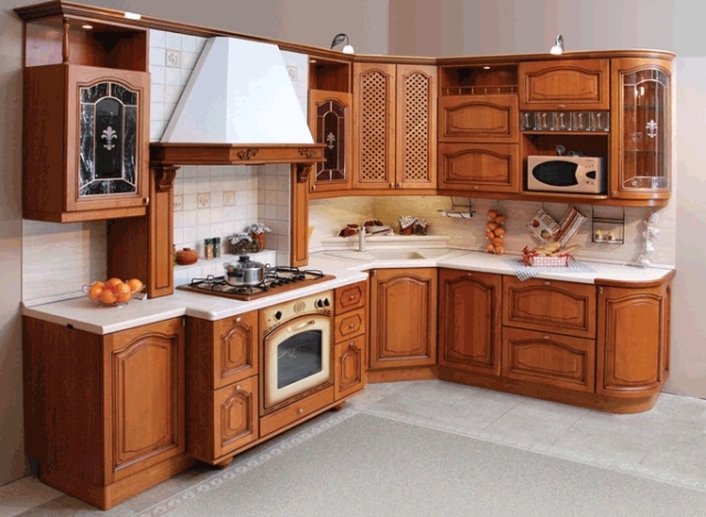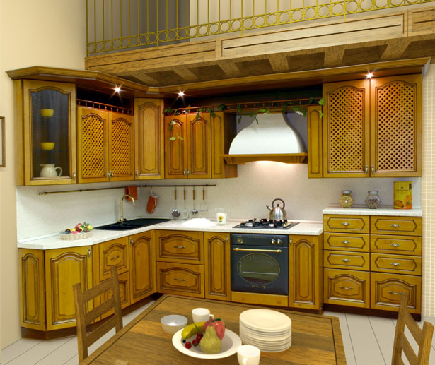 Уютная угловая кухня Сильвия в классическом стиле идеально подойдет для небольшого помещения, где нужно поставить не только кухонную мебель, а и обеденный стол. Декоративные элементы: витражи с металлическим оформлением, переплетенные дверцы шкафчиков, интересная резьба и многое другое не оставят равнодушным почитателей классической мебели, декорированной «под старину». Фасады кухни выполнены из натурального дерева без использования токсических лаков и красок с использованием самой современной фурнитуры.
