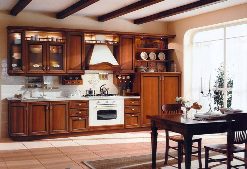 Романтичное название для благородной классической кухни Венеция было выбрано не случайно, ведь она настолько утонченна и изыскана, как узкие улочки старого города на воде. Вместительные шкафчики и внешняя компактность понравятся практичной хозяйке, а качественная итальянская фурнитура сделает эту кухню еще и долговечной. Фасады гарнитура выполнены из экологически чистого натурального дерева. Центральная часть фасада – шпон черешни, а рамка – массив липы. Для придания древесине особенного цвета и шарма, применена техника искусственного состаривания и покрытия лаком для защиты. Эта кухня идеально впишется в общий стиль вашего интерьера и будет долгие годы радовать вас.